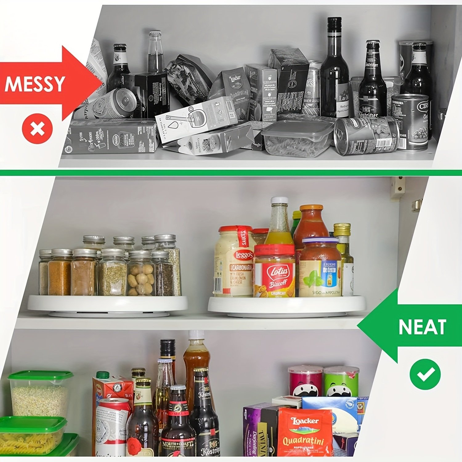 Perfect daily organizing item ; simple design; high quality & delicate for your must have item. This lazy susan turtable organizer is a must have pantry cupboard organizer in your home.