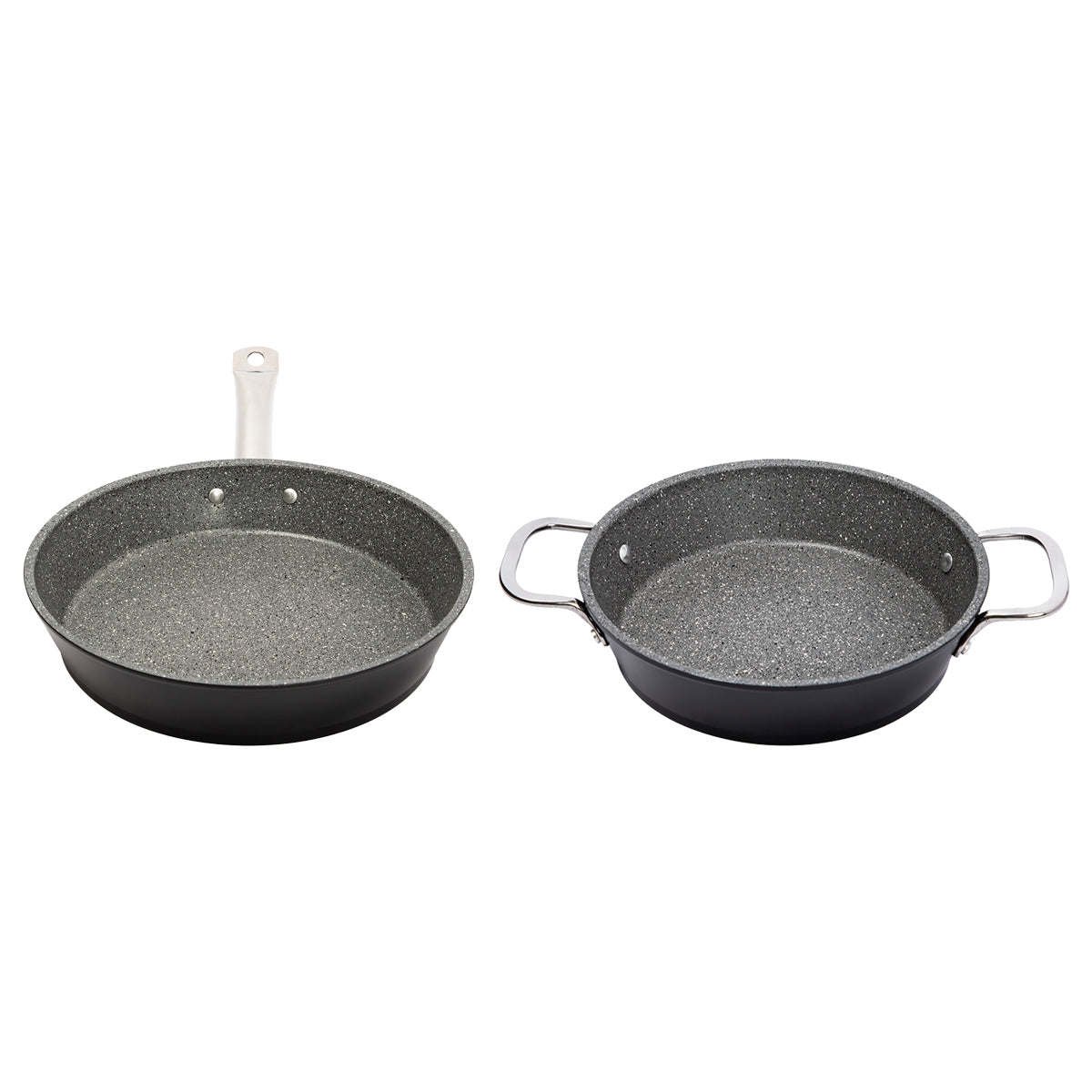 SERENK PAN SET: Serenk non stick pan set includes 1 frying pan and 1 always pan. They are made from high-grade granite reinforced with special material PTFE to be more durable, more functional and technically superior. Therefore, Serenk pots and pans are safe, non-toxic, nonstick and long-lasting. This technology prevents sticking and provides a perfect surface. Creates a flavor layer, adds elegance in presentation and gives it easy-to-clean feature.